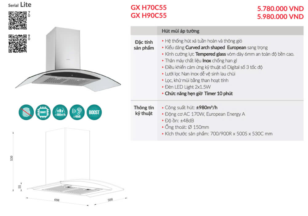 HÚt Mùi GX H90C55 - Giải Pháp Hiệu Quả Cho Không Gian Bếp Hiện Đại