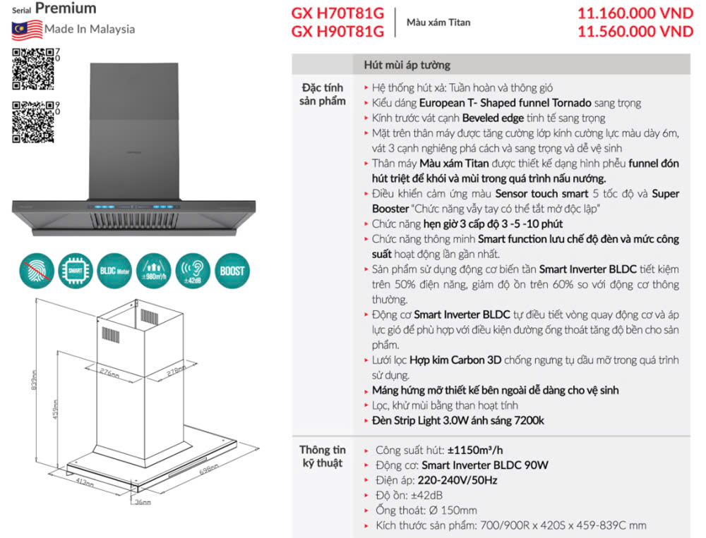Nếu bạn đang tìm kiếm một máy hút mùi cao cấp, hoạt động êm ái và tiết kiệm điện, GrandX GX H70T81G chính là giải pháp tối ưu! Hãy sở hữu ngay hôm nay để tận hưởng không gian bếp trong lành và tiện nghi.