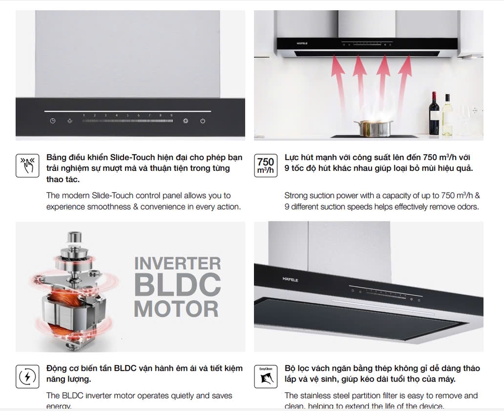 Ưu điểm nổi bật của máy hút mùi Hafele HC-W705B