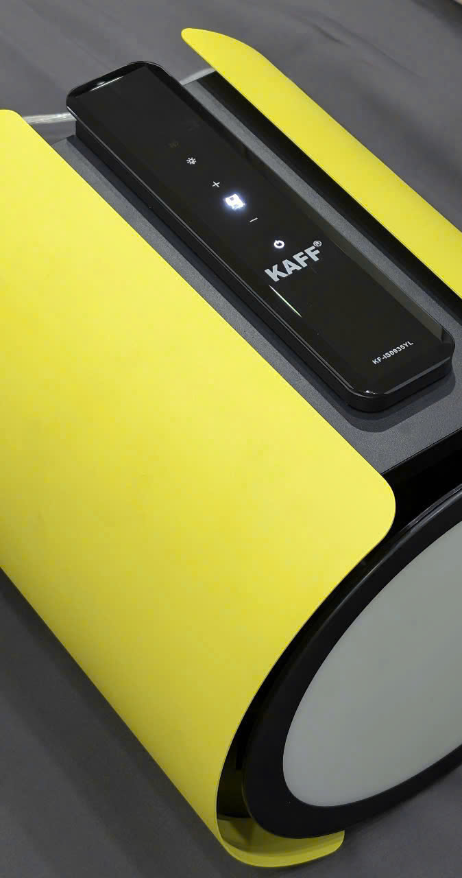 Máy hút mùi Kaff KF-IS0935YL được thiết kế theo phong cách treo trần hiện đại, mang lại nét sang trọng và đẳng cấp cho căn bếp. Với kiểu dáng tròn thanh lịch, tông màu vàng đen thời thượng, sản phẩm này không chỉ là thiết bị hút mùi thông minh mà còn là một món nội thất trang trí nổi bật, đặc biệt phù hợp với các không gian bếp thiết kế kiểu phương Tây hoặc tối giản hiện đại.