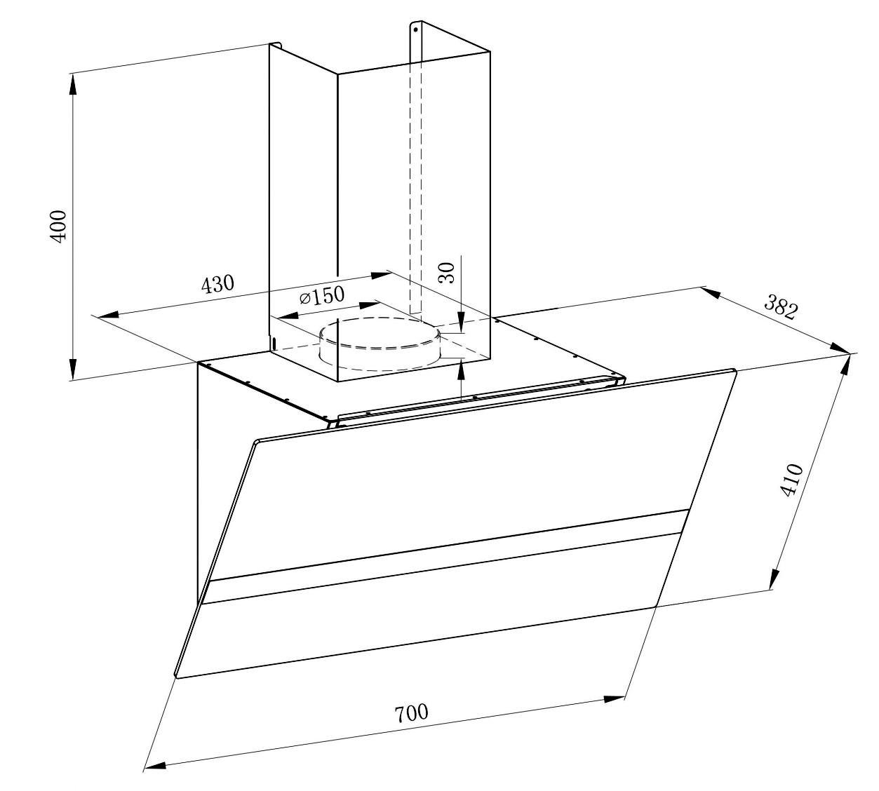Máy hút mùi được làm từ chất liệu cao cấp với kính cường lực màu trắng, thiết kế vát phẳng độc đáo, mang lại vẻ đẹp tinh tế và hiện đại cho không gian bếp.