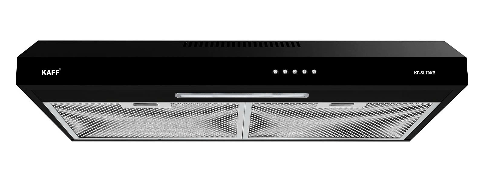 Máy hút mùi KAFF KF-SL70KB có kích thước 70cm, dễ dàng lắp đặt ngay phía trên bếp nấu. Thân máy được làm từ thép phủ sơn tĩnh điện màu đen chống gỉ, giúp tăng độ bền và dễ dàng lau chùi. Thiết kế đơn giản nhưng không kém phần sang trọng, hài hòa với nhiều kiểu không gian bếp khác nhau.