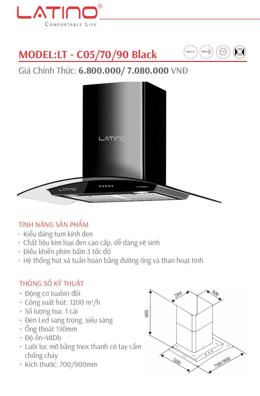 Thông Tin Sản Phẩm Máy Hút Mùi Latino LT-C05/70