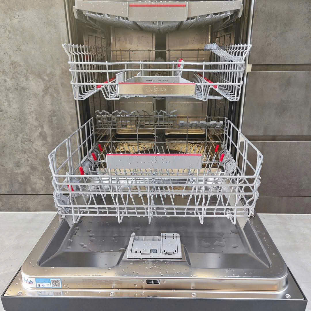 Bosch cũng chú trọng đến chi tiết tiện ích như: hẹn giờ chạy (1–24h), cảnh báo kết thúc, báo mức nước, cùng các khay trượt êm và vị trí để ly tiện lợi. Tất cả tạo nên một sản phẩm toàn diện về công năng – tiết kiệm – tiện nghi cho gia đình hiện đại.
