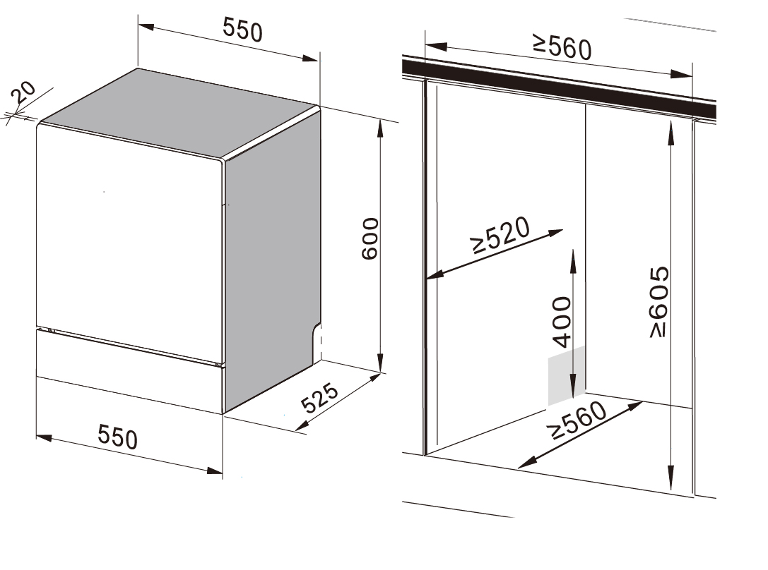 - Máy rửa bát đứng độc lập có thể lắp âm tủ