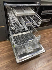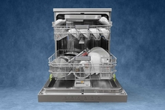 Bên trong máy gồm 3 khay chứa đồ cơ động cùng một ngăn giỏ chuyên dụng để dao kéo hoặc đũa, giúp tối ưu hóa không gian chứa lên tới 14 bộ bát đĩa. Hệ thống khay được thiết kế chắc chắn, có thể di chuyển êm ái ngay cả khi chứa lượng bát đĩa nặng.