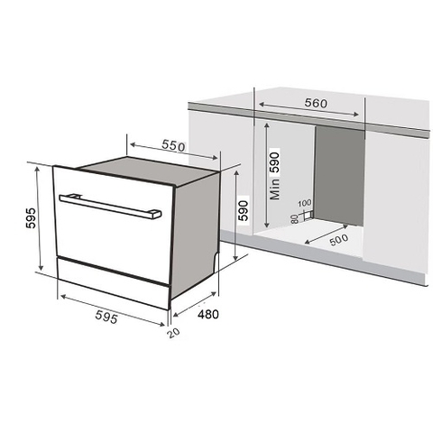 - Kích thước âm tủ: 550R x 480S x 590C (min) mm