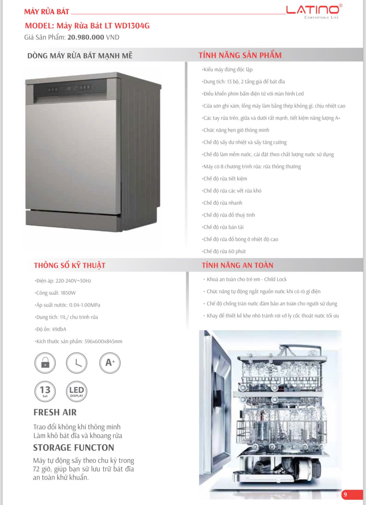 Máy rửa bát LATINO LT-WD1304G không chỉ là thiết bị gia dụng tiện ích mà còn là trợ thủ đắc lực giúp bạn tiết kiệm thời gian và công sức trong việc dọn dẹp bát đĩa. Với thiết kế sang trọng, công nghệ hiện đại và nhiều tính năng ưu việt, đây chắc chắn là sản phẩm không thể bỏ qua.