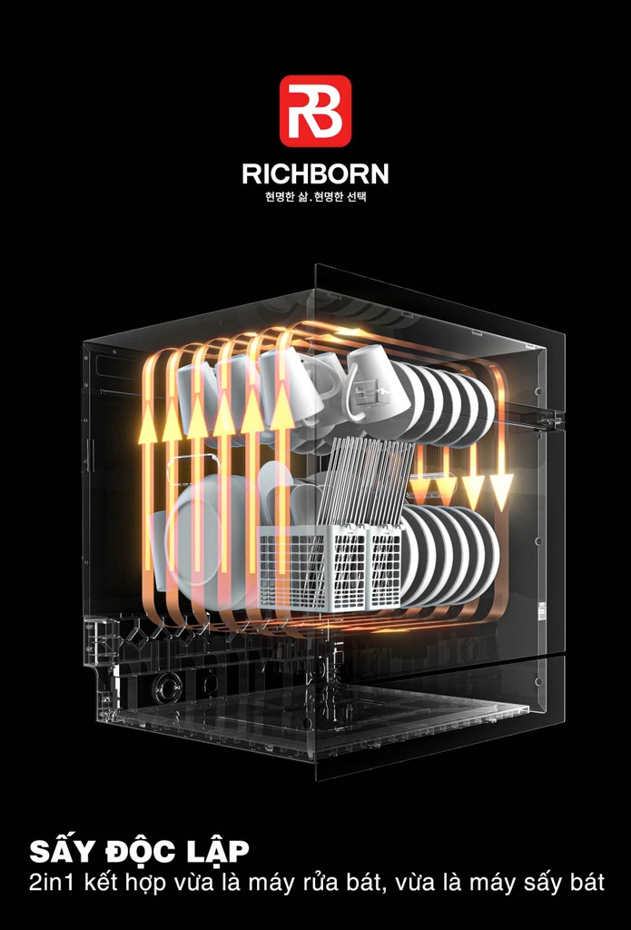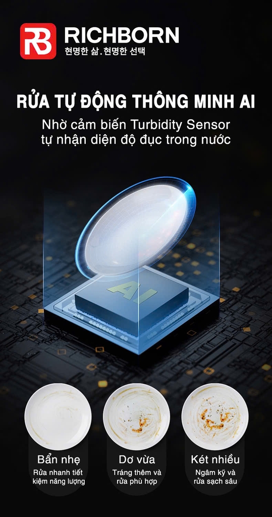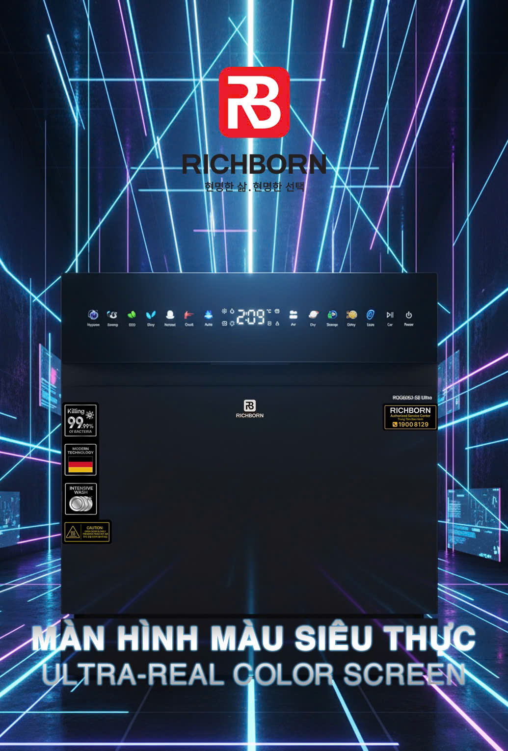 Máy rửa bát RICHBORN RDG6063-S8 Ultra – Công nghệ AI hiện đại, thiết kế sang trọng