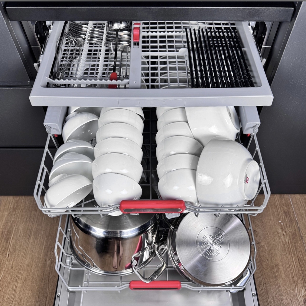 Với dung tích 16 bộ chén đĩa, máy đáp ứng nhu cầu sử dụng của cả gia đình đông người hoặc những dịp tiệc tùng. Động cơ BLDC kép hoàn hảo kết hợp 3 tay quay phun 720° giúp làm sạch sâu mọi ngóc ngách, từ xoong nồi lớn đến ly tách nhỏ.