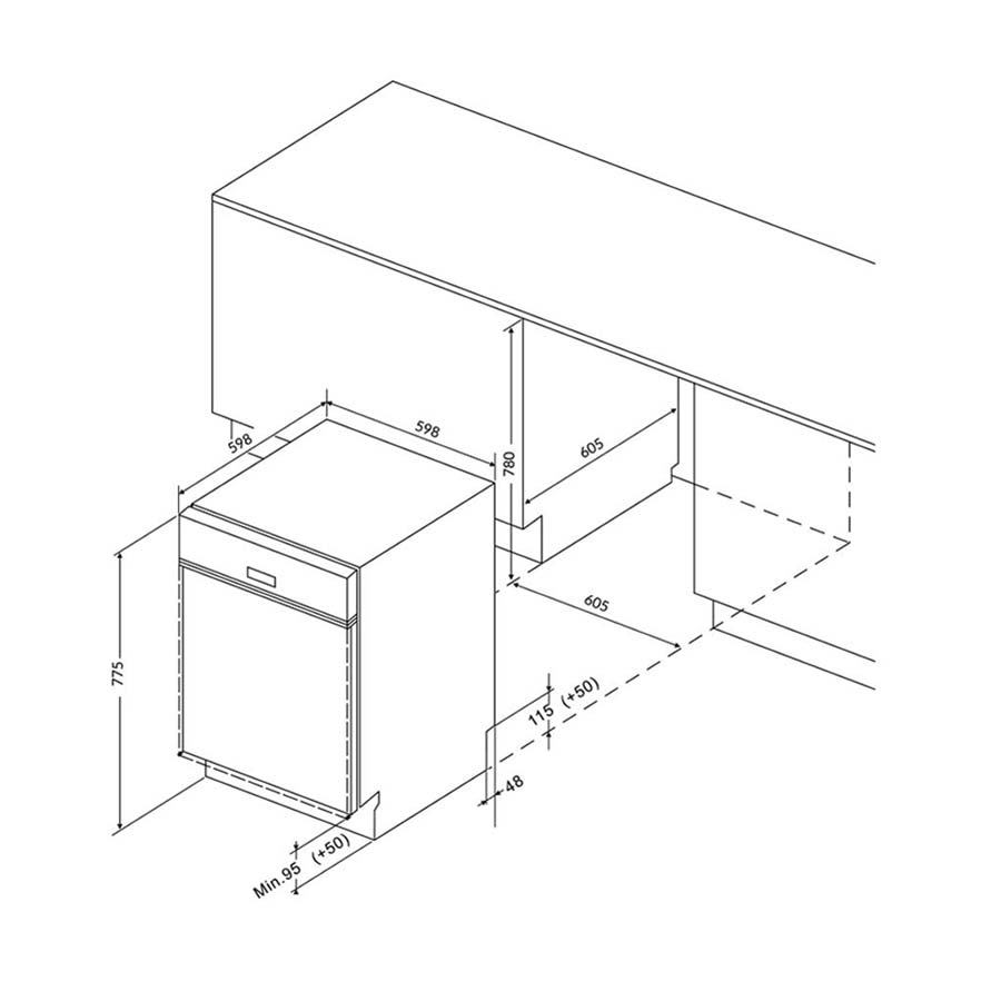 | Kích thước sản phẩm | 598R x 598S x 775-805C (mm) |
