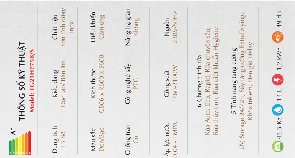 Texgio TG21H775B không chỉ giúp tiết kiệm thời gian, công sức mà còn đảm bảo chén bát luôn sạch khuẩn, bảo vệ sức khỏe gia đình bạn. Với công nghệ hiện đại, thiết kế tinh tế và hiệu suất vượt trội, đây là sản phẩm không thể thiếu trong căn bếp của gia đình bạn.