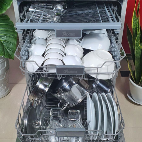 - Tiết kiệm: Chỉ tiêu thụ 10L nước mỗi lần rửa và 0.85 kW/h, phù hợp cho gia đình đông người.