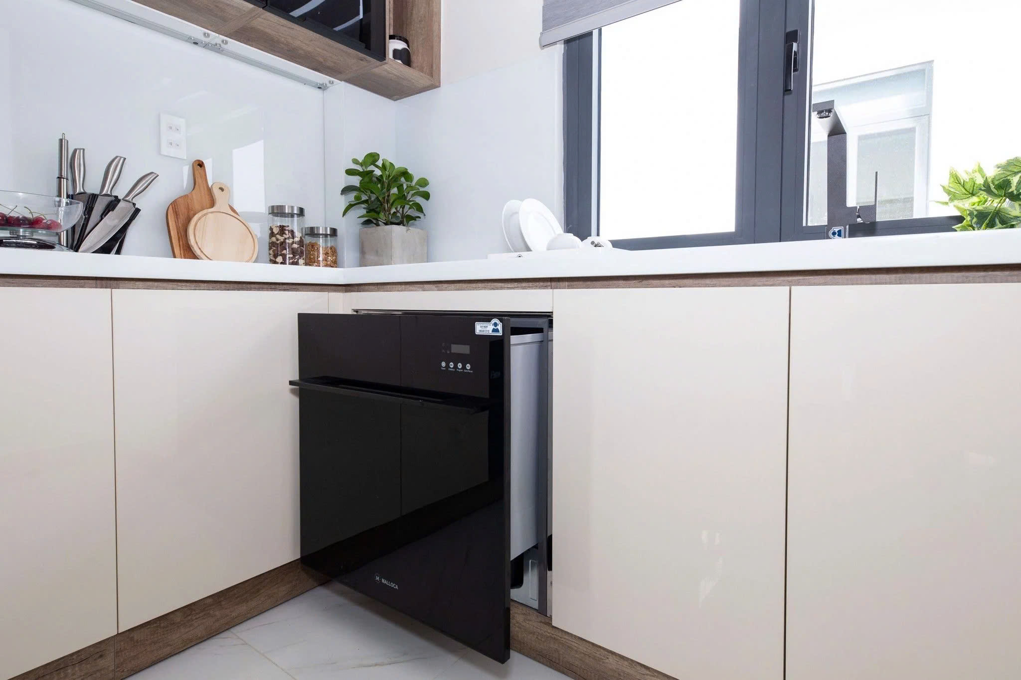 Tiết Kiệm Không Gian: Thiết kế âm tủ dạng ngăn kéo giúp tiết kiệm không gian bếp và dễ dàng lắp đặt.