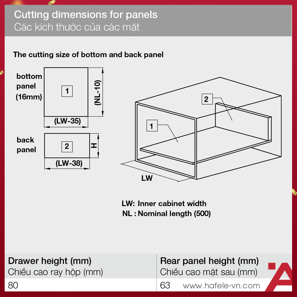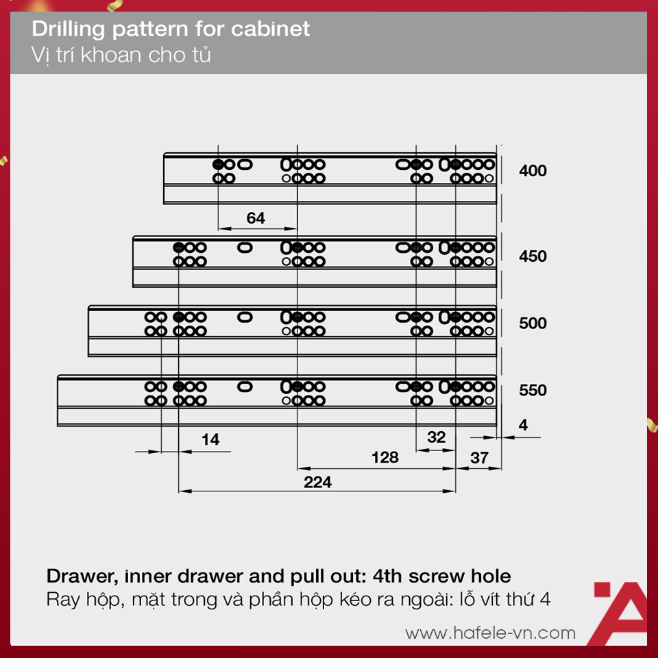 Tuân thủ khoảng cách lắp đặt theo hướng dẫn Hafele để ray hoạt động trơn tru và bền lâu.