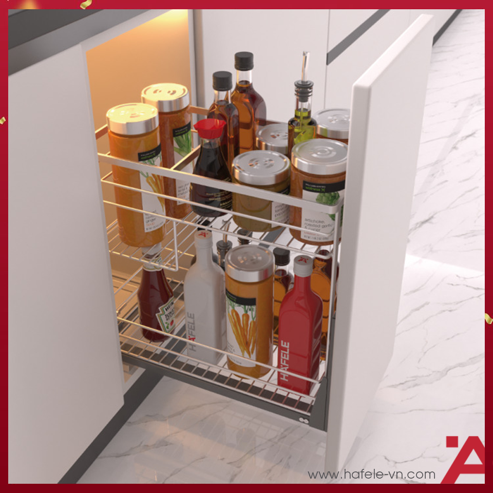 RỔ ĐỰNG GIA VỊ 300MM HAFELE 549.20.038 – GIẢI PHÁP LƯU TRỮ GỌN GÀNG, NÂNG TẦM KHÔNG GIAN BẾP HIỆN ĐẠI