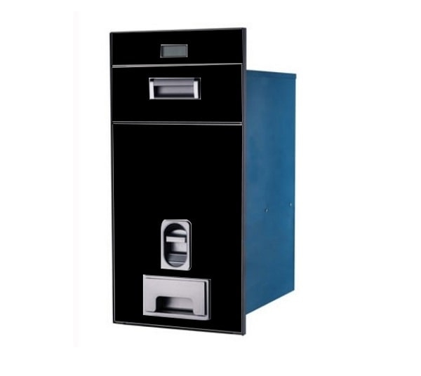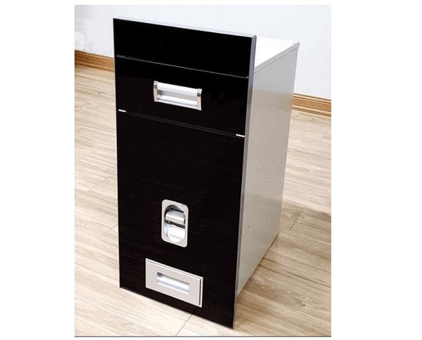 Thùng gạo được làm từ thép sơn tĩnh điện kết hợp với mặt gương màu đen, không chỉ mang lại vẻ đẹp sang trọng mà còn đảm bảo độ bền và dễ dàng vệ sinh.