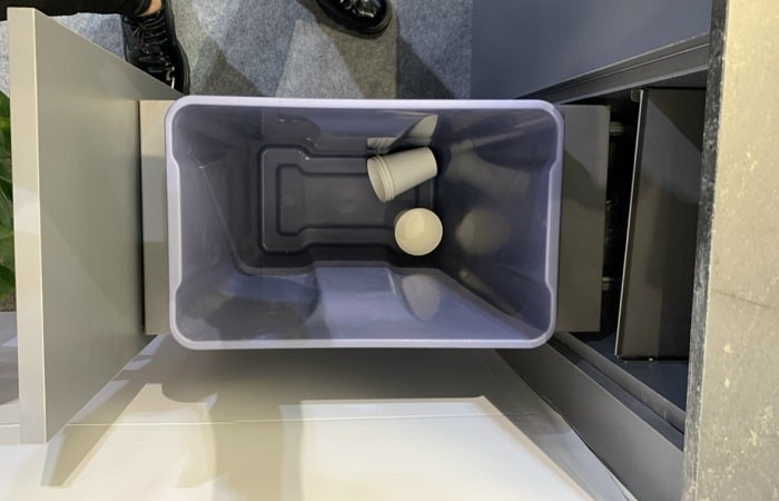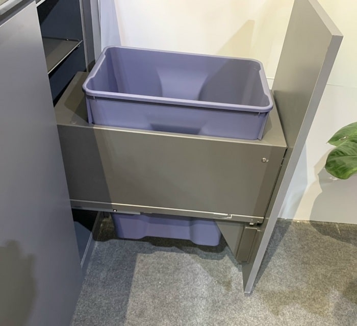 Nắp của thùng rác được mở bằng chuyển động kéo của cánh cửa tủ, mang lại sự thuận tiện và dễ dàng trong việc sử dụng.