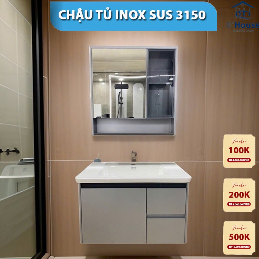 Tủ Gương Phòng Tắm, Tủ Lavabo Đẹp, Tủ Lavabo Phòng Tắm, Tủ Chậu Inox SUS 3150