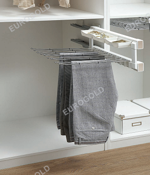 Vắt quần kết hợp để trang sức ray giảm chấn Eurogold EVA400 là giải pháp hoàn hảo cho không gian tủ quần áo của bạn. Với thiết kế thông minh và tính năng vượt trội, sản phẩm không chỉ giúp bạn tổ chức quần áo mà còn lưu trữ trang sức và phụ kiện một cách gọn gàng và tiện lợi.
