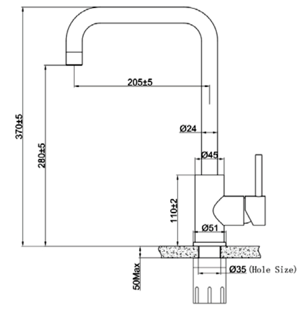 | Hình dáng | Vòi thiết kế bo tròn, đầu vòi ngang |