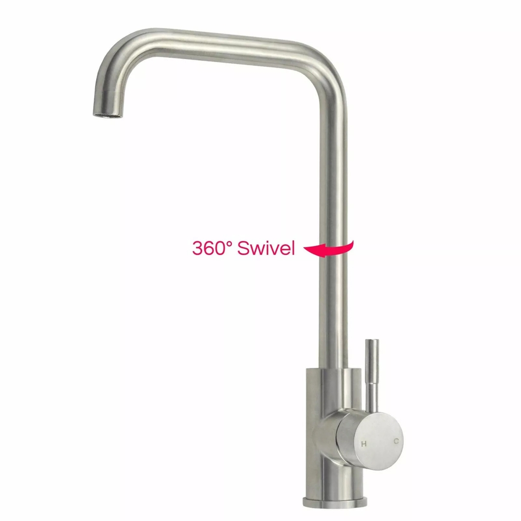 - Thân vòi xoay 360 độ, mang lại phạm vi tiếp cận rộng rãi, thuận tiện cho mọi thao tác làm bếp.