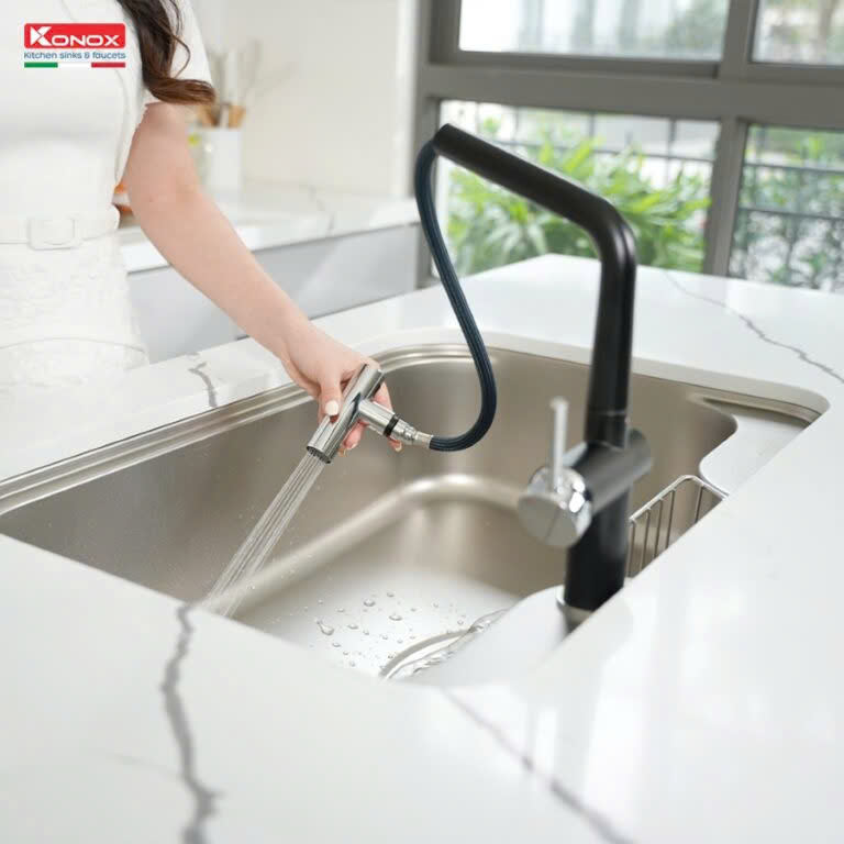 VÒI RỬA BÁT DÂY RÚT KONOX VOLTA BLACK | THIẾT KẾ HIỆN ĐẠI | CHUẨN CÔNG NĂNG
