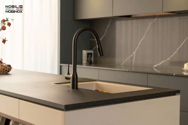MANIA NB308G là mẫu vòi rửa bát dây rút cao cấp nằm trong bộ sưu tập MANIA của Nobili – thương hiệu vòi bếp hàng đầu từ Ý. Với tông màu Grafite Brushed PVD độc đáo, sản phẩm không chỉ tạo điểm nhấn thẩm mỹ cho gian bếp mà còn mang lại trải nghiệm sử dụng tiện lợi, an toàn và bền bỉ.