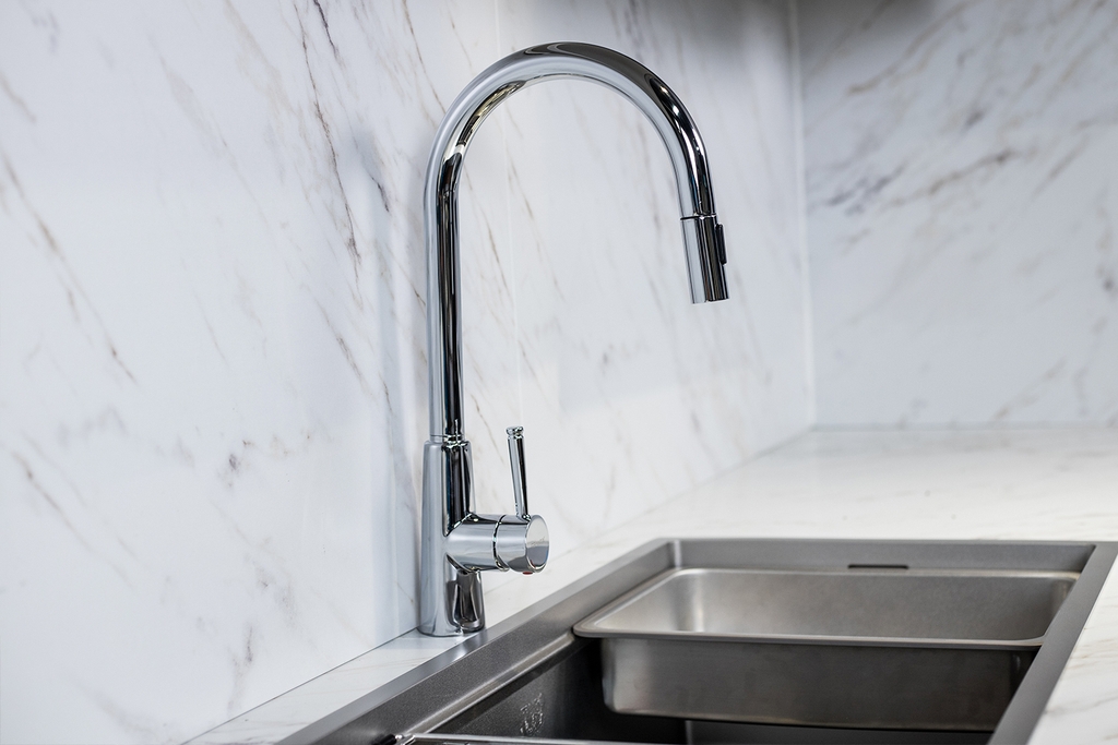 Bề Mặt Mạ PVD Chrome: Giúp vòi luôn sáng bóng, dễ vệ sinh và giữ được vẻ mới sau thời gian dài sử dụng. Đây là điểm nhấn hoàn hảo cho mọi không gian bếp.